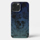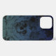 Blue Skull and floral iPhone 13 Pro Max Case. © Dark Heart Desires. A design of skulls and flowers in a blue gradient colour is on this iPhone 13 pro max case.