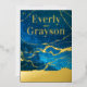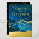 Beautiful Deep Jewel Blue Galaxy Tones Hues of Blue Night Sky with Black and Gold Foil Marble Veining Inspired Aesthetic Elegance. Galaxy Agate Abstract Design with Real Gold Foil, But you choose from Rose Gold, Gold or Silver Foil. Perfect for the Gem, Agate, Crystal, Rock Lovers Wedding or Any Elegant Theme Such as a Magical Fairytale Gold Dust Wedding Theme. Can change to any custom colour by clicking customize/edit/personalize further. Once inside the design tool scroll to bottom of layer and click "edit" to enter the background colour tool. Real gold foil Abstract Geode Crystal Marble Veins, black background on back, Romantic Moody Evening Sky Wedding with real gold foil wedding invitations. #GalaxyEveningSkyWedding #MarbleWedding
