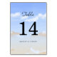 Elevate your wedding decor with these minimalist yet stunning watercolor table number cards, featuring a serene gradient of blue and gold sunset skies. Perfect for couples seeking sophisticated, cohesive stationery that complements a celestial, garden, or luxury wedding theme.