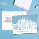 Our offices has moved to a new building, please update your address book. Customize the back of this professional moving announcement postcard with your custom company information for all of your business contacts and clients. A beautiful blue modern city building skyline drawing for your company address change announcements.
