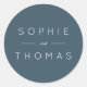 This wedding sticker features the names of the wedding couple in white against a blue slate colour back side. Check out the matching wedding items here https://www.zazzle.com/collections/sage_layered_geometric_blue_slate_wedding-119021046856867346?rf=238364477188679314&tc=rc