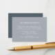 These petite cards are designed to match our Chiffon wedding collection, and are an elegant and discreet way to let guests know about any recommended hotels, group codes or booking discounts. Simple design features your custom text on a slate blue grey background. Cards reverse to a darker slate blue shade.