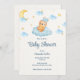 Drift into a dreamy celebration with this blue sleepy bear baby shower invitation. Featuring a snuggly bear napping on a cloud, with stars and moon in soft watercolor style, it sets the perfect tone for a cozy, heartfelt gathering.