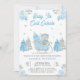 Blue Sleigh Cute Teddy Bear Baby Shower Invitation