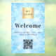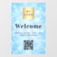 A light blue background with snow crystals, snowflakes. Personalize and add your logo and text. Add your web url to your website (or social media account) to the QR code.