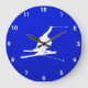 Blue Snow Skiing Large Clock