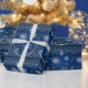 This blue winter wrapping paper is inspired by falling snow and the quiet beauty of the season.