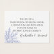 Pratiquez une certaine gentillesse mariage lorsque vous organisez cette carte de faveur mariage élégante au lieu de réception de vos invités. La Carte de charité de mariage d'hiver Blue Snowflake indique qu'au lieu d'une faveur traditionnelle de parti, un don a été fait en leur nom à une oeuvre caritative. Customisez la carte en ajoutant dans le nom de votre organisme de bienfaisance favori et les noms personnels de la mariée et du marié. Cette carte de bienfaisance hivernale classe présente un design complexe de flocon de neige avec une teinte bleue et un arrière - plan blanc. Convient pour un élégant thème mariage Décembre, Janvier ou Février bleu hiver merveilleland.