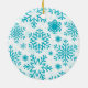Celebrate the beauty of winter with this blue snowflake ceramic Christmas ornament. Featuring an elegant pattern of icy blue snowflakes on a clean white background, this ornament adds a calm, modern touch to your holiday décor.
