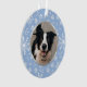 Customisez ce flocon de neige bleu et blanc hivernal / motif empreinte de patte avec la photo de votre animal sur le devant. Le dos a un modèle pour ajouter le nom de votre animal et un an. >>> Pour modifier la police, la taille et la couleur du texte, utilisez le bouton Personnaliser. <<< La photo de l'animal de compagnie et les modèles de texte personnalisés ont tous deux un cadre de bordure imprimé en faux argent.