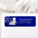 Cette étiquette d'adresse de retour distinctive présente une silhouette argentée Chih Tzu image de chien devant un spray de flocons de neige argentés ornés. L'image est placée sur un arrière - plan bleu profond dégradé. Votre texte personnalisé est en argent correspondant à droite de l'image.