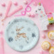 Blue Snowflakes Christmas Deer with Bow Paper Plate