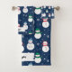 Blue Snowman Christmas Pattern with Name Bath Towel Set