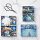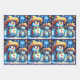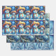 Blue Snowman Christmas Tree Baubles Decoupage Wrapping Paper Sheet