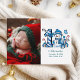 Celebrate your little one’s first holiday season with this cheerful winter design featuring a blue plaid number, adorable snowman, and scattered candy canes and gifts. Customize it with your baby's photo and birth details to create a keepsake that brings charm and magic to your holiday memories.