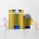 A cute and colourful gold Christmas wrapping paper featuring a pattern of little snowmen dressed in blue velvet top hats and vests, surrounded by gold stars to give your gift wrapping this holiday season a whimsical and stylish touch.