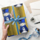 Blue Snowmen on Gold Christmas Wrapping Paper