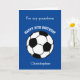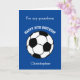 A blue soccer sport 10th birthday card for grandson, godson, son, etc who play soccer or are soccer fans. You can easily personalize the front of this blue sports birthday card with his name. The inside reads a birthday message, which you can easily edit as well. You can personalize the back of this soccer birthday card with the year. This would make a great birthday card keepsake for his 10th birthday.