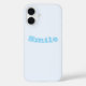 iPhone Case Mate with the word Smile text typography decorative cell phone protection cover case printed with Blue Soft White Pastel Solid Colour background illustration and select products collection by TheFabricSeal print on demand shop at Zazzle.com #ZazzleMade https://www.zazzle.com/store/thefabricseal TheFabricSeal©️Original.