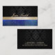 Elégant or rayé bleu étincelle les Cartes de visite de maquillage damassé foncé.