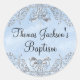 Baptism Sticker. Silver swirl design & pretty blue jewels. Please note: All flat images!