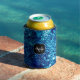 Blue sparkles Abstract Frozen bubbles Monogram Can Cooler