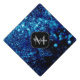 Blue sparkles Abstract Frozen bubbles Monogram Graduation Cap Topper