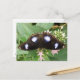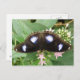 This stunning postcard features a photograph of a beautiful tropical butterfly. This species is mainly black with beautiful iridescent bright blue spots on each wing. The photograph was taken using macro photography for a stunningly detailed result.