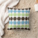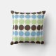 Blue, Spring Green, and Brown Retro Circles Pattern Pillow. Modern, fun, and chic!