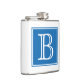Add your initials or other text to customize this simple and modern Square Monogram Flask in blue and white. This trendy and chic flask would make a great gift.