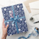 Abstract modern winter white and blue snowflake and star pattern elegant design. Decorate your Christmas gifts with this festive blue and white wrapping paper.
