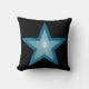 Modern design with a "shining" blue and white star on a black background. Throw pillow with a customizable design for you to personalise with your own text, images and ideas. This is a digital art image created using original photographs and digital techniques and printed onto fabric, it does not shine or contain real sparkles.