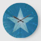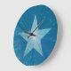 Modern design with a "shining" blue and white star on a "glowing" background. Wall clock with a blue and white customizable design for you to personalise with your own text, images and ideas. Please note that this is a printed image created using original photographs and digital techniques, it does not shine or contain real sparkles.