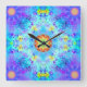 Blue Star Hippy Mandala Patterned Square Wall Clock