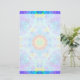A blue, yellow and orange hippy style mandala kaleidoscope pattern with stars.