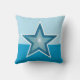 Design moderne avec une étoile bleue et blanche "brillante" sur un arrière - plan bleu deux couleurs. Jetez un oreiller avec un design personnalisable pour que vous personnalisiez avec votre propre texte, images et idées. Il s'agit d'une image art numérique créée à l'aide de photographies originales et de techniques numériques et imprimée sur le tissu, il ne brille pas ou contient de vrais étincelles.