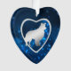 Perfect for the Border Collie owner, this pretty Holiday ornament features a silver silhouette Border Collie Dog image surrounded by a blue star light night sky. The image is placed within a faux jewel frame heart shape, with a corresponding star light blue border. The back of the ornament has the same blue background, and text for you to customize.