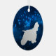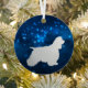 This pretty Holiday ornament features a silver silhouette American Cocker Spaniel Dog image surrounded by a blue star light night sky. The back of the ornament has the same blue background, and two text fields for you to customize. Elegant for the Cocker owner.