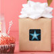 Modern design with a "shining" blue and white star on a black background. Sticker with a customizable design for you to personalise with your own text, images and ideas. Please note that this is a printed image created using original photographs and digital techniques, it does not shine or contain real sparkles.
