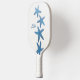 A nautical blue and white Pickleball paddle with gradient ombre shades of blue starfish on Sandy white background . Personalise with Initials on each side and always wish upon a starfish!