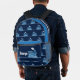 Blue puffing steam train boys backpack. Personalize with your child's name, perfect for library or school. Currently reads George and George on boiler plate plus George - Super Ferroequinologist along the top flap, add your own name maybe your family name class and own message. Part of the kids graphic steam train range. Background colour can also be changed to your own colour choice currently in dark blue. A perfect gift for boys to take to school or as a gift to a train or railway transport fan. Original steam train graphic art and design by Sarah Trett exclusively for www.mylittleeden.com on zazzle.