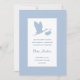 Simple but attractive blue and white birth announcement with a silhouette of a flying stork. On the back there is room for adding a digital image of your new baby.