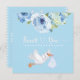 Cute Stork Baby Shower thank you card with a blue floral accent , a stork carrying a bundle with a monogram and handwritten script with thank you and a heart. Use template to easily make this baby shower thank you card your own. Perfect for boys or girls.