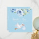 Blue Stork Monogram Floral Baby Shower Thank You Card