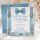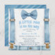 Celebrate the upcoming arrival of your little man with this adorable baby shower invitation! Featuring a charming blue bow tie and suspenders design, this card is perfect for a sophisticated and stylish celebration. The soft blue colour palette and cute illustration create a memorable keepsake for guests to cherish. Personalize it with your party details and make your little man's arrival even more special. This unique design is sure to impress your family and friends, making it the perfect choice for any modern baby shower.