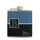 Black and stripes flask with monogram groomsman gift with wedding date. Change background colour to change stripe colour.