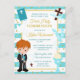 Cute red hair boy blue holy first communion design with blue striped background and gold foil confetti. Graphics by Mujka and KlouiseDigiArt on Etsy.