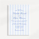 This wedding invitation features a soft blue and white vertical stripe pattern paired with elegant script typography. The classic stripe design gives the invitation a timeless and refined look, while the light blue colour palette keeps it fresh and modern. The combination of clean stripes and flowing script lettering creates a balanced style that feels both traditional and modern.