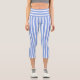 Blue and white striped high-waisted Capri leggings.