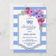 Blue Striped Floral 90th Birthday Dinner Party Invitation